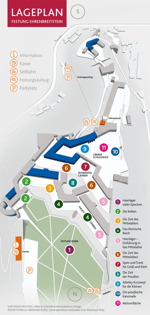 (Einstieg oberhalb des Rhein-Museums) zum Festungseingang „Schrägaufzug / Jugendherberge“ (Nähe Felsentor).